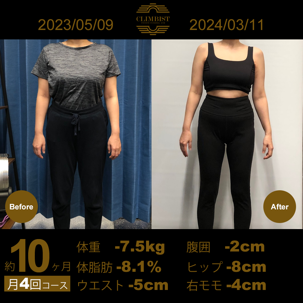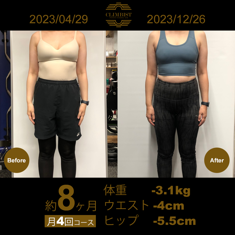 目標を達成したら、次の目標を設定しトレーニングを継続するか、仕上がったカラダを維持するためのプランに移行し、クライミストがフォローアップを行います。