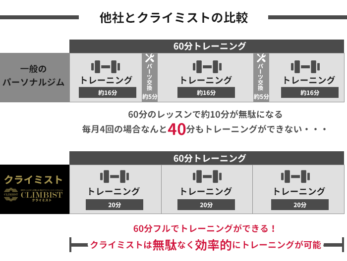 何よりもトレーニング種目を変えるのに2.3歩移動するだけなので、大切なトレーニング時間を無駄にしませんし専用マシンとケガ防止のトレーニングギアを使用しますので極限までケガのリスクをおさえています。